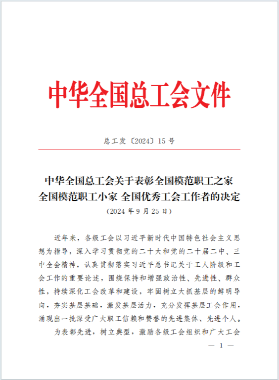 近日,中华全国总工会印发《关于表彰全国模范职工之家 全国模范职工小家 全国优秀工会工作者的决定》(总工发 〔2024〕15号)文件,对近年来涌现出的一批深受广大职工信赖和赞誉的先进集体、先进个人进行表彰。学校纪委委员、我院党委书记、原工会常务副主席朱奕远被授予“全国优秀工会工作者”荣誉称号。
