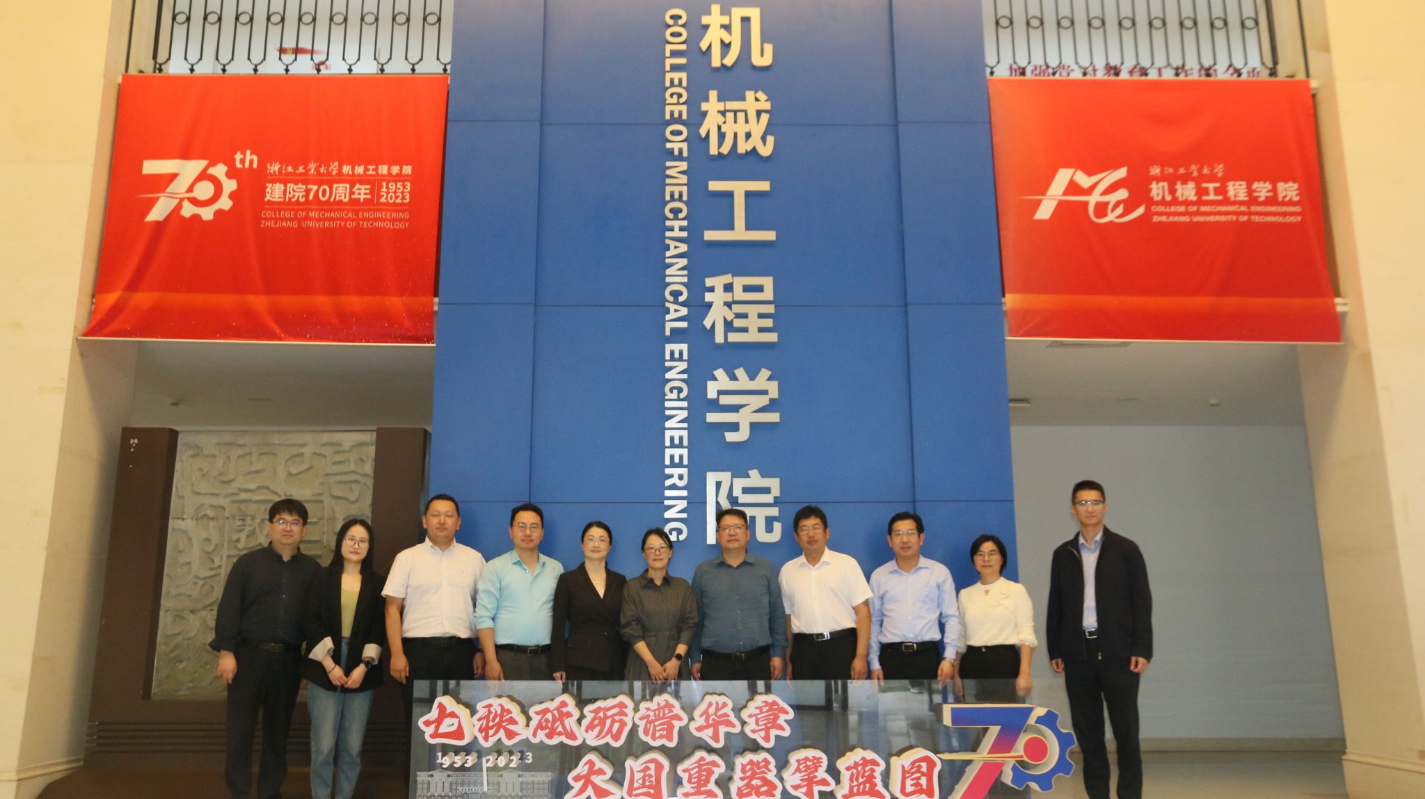 (机械工程学院)领导班子在院长朱耀东、党委书记朱奕远的带领下赴浙江工业大学机械工程学院调研,浙江工业大学机械工程学院党委书记章嫦华、执行院长谭大鹏、副院长朴钟宇、党委副书记夏航、办公室主任陈国波等参加调研交流。