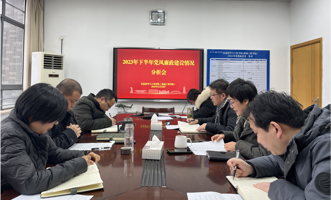 为深入学习领会习近平总书记关于党的建设的重要思想和全面从严治党重要论述精神,进一步推进党风廉政建设,层层压实主体责任,强化学院党委班子责任担当意识,促进政治核心作用发挥,1218日下午,学院在兴礼楼3楼会议室召开2023年下半年党风廉政建设情况分析会。学院党委书记谢宏主持会议,学院党政领导班子全体成员参加会议。
