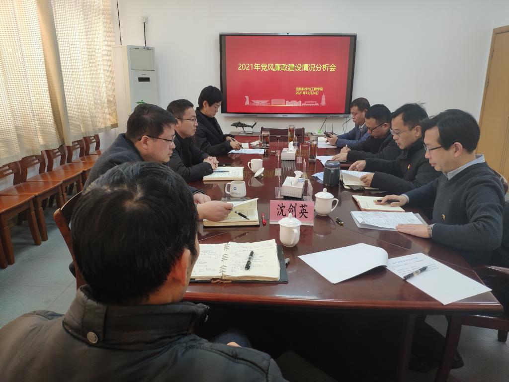12月24日上午,学院在兴礼楼3楼会议室召开2021年党风廉政建设分析会,学院党委全体成员参加分析会。纪检监察室(巡察办)主任黄金珠到会指导。
