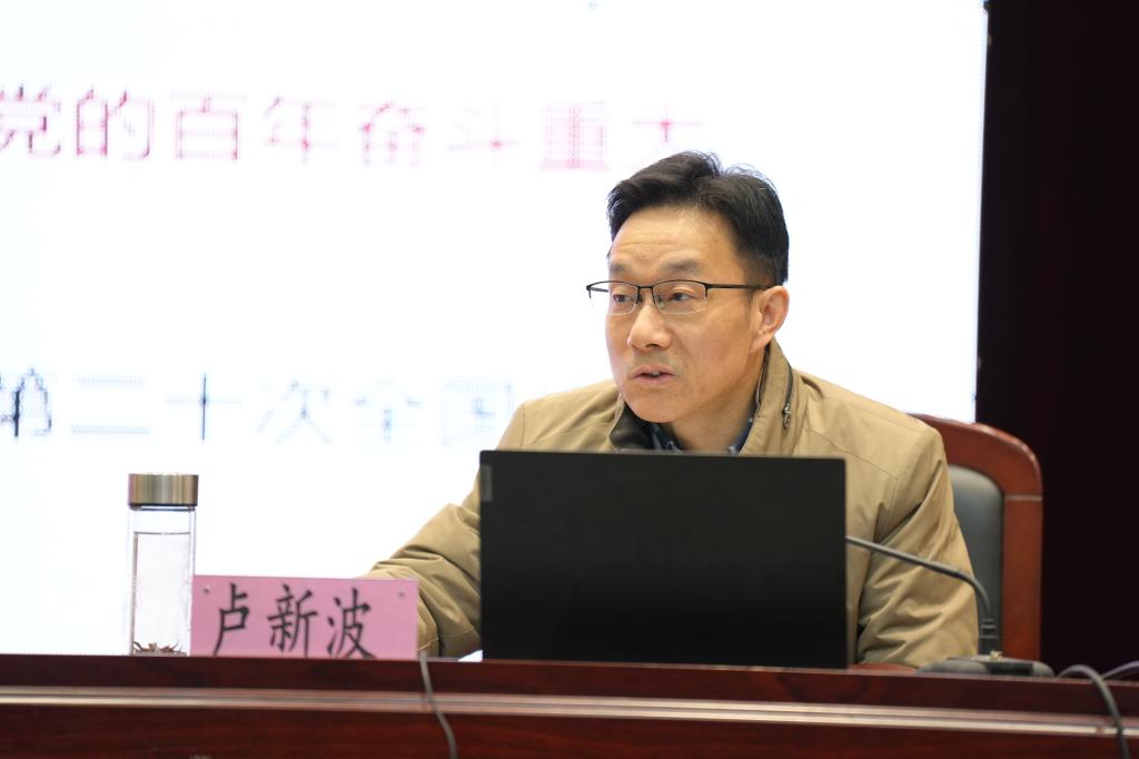 12月16日下午,学院在TCL报告厅举办党的十九届六中全会精神学习宣讲会,嘉兴学院党委书记卢新波到会作宣讲报告。学院党政班子成员、全体教师参加宣讲会。宣讲会由学院党委书记谢宏主持。