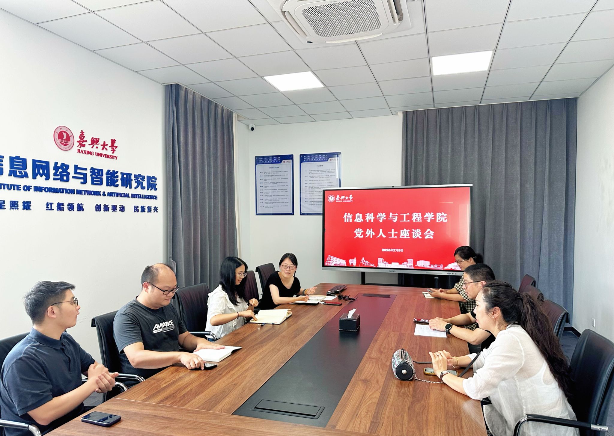 朱奕远书记首先通报了学院党总支近期重点工作进展以及半年以来学院重点工作推进情况。她指出,学院党总支以中央八项规定精神学习教育为抓手,全面推进从严治党,不断加强作风建设、组织建设和党风廉政建设,以高质量党建引领学院高质量发展。她强调当前学院正处于人才引育和科研创新双提升的关键期,发展机遇与挑战并存,希望党外教师充分发挥优势,为学院发展建言献策。