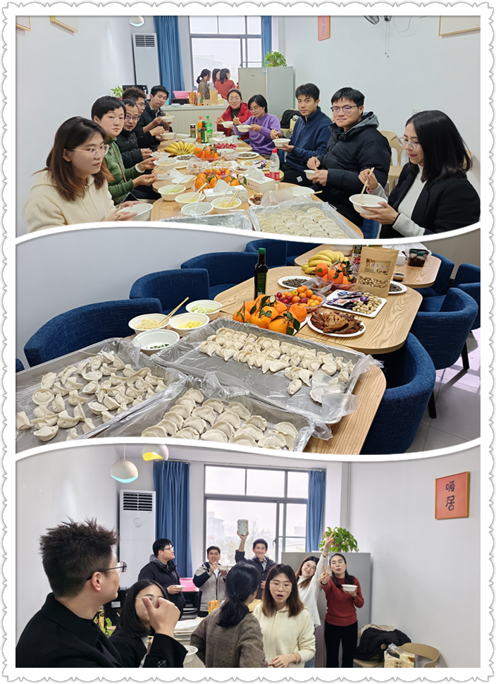 活动包括包饺子、有奖竞猜灯谜、茶话会等环节。大家一早来到教工小家,布置现场,准备馅料。大家围在桌旁,一边动手包饺子,一边分享新年的习俗和故事,现场充满了欢声笑语,一碗碗热气腾腾的饺子增添了几分暖意。猜灯谜活动中,大家你一言、我一语的互相提示和讨论,猜对答案的人欢欢喜喜地领取了小礼品,在欢声笑语中感受着“大家庭”的温暖和游戏竞技带来的快乐。