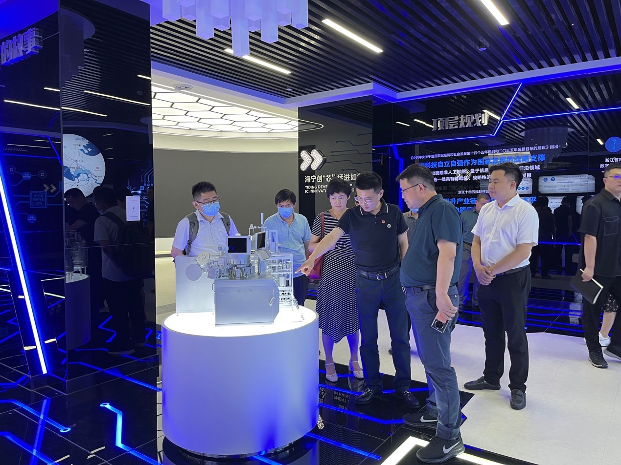 与会人员首先参观了海宁泛半导体产业园展厅,了解海宁半导体产业的培育模式和成果展示。随后校地双方就产学研合作展开座谈,座谈会上,陈中权介绍了海宁泛半导体产业园的建设情况,校地双方就产业学院、一园一博、大学生就业等方面展开深入讨论,初步达成合作意向。会上,企业代表依次进行了交流。