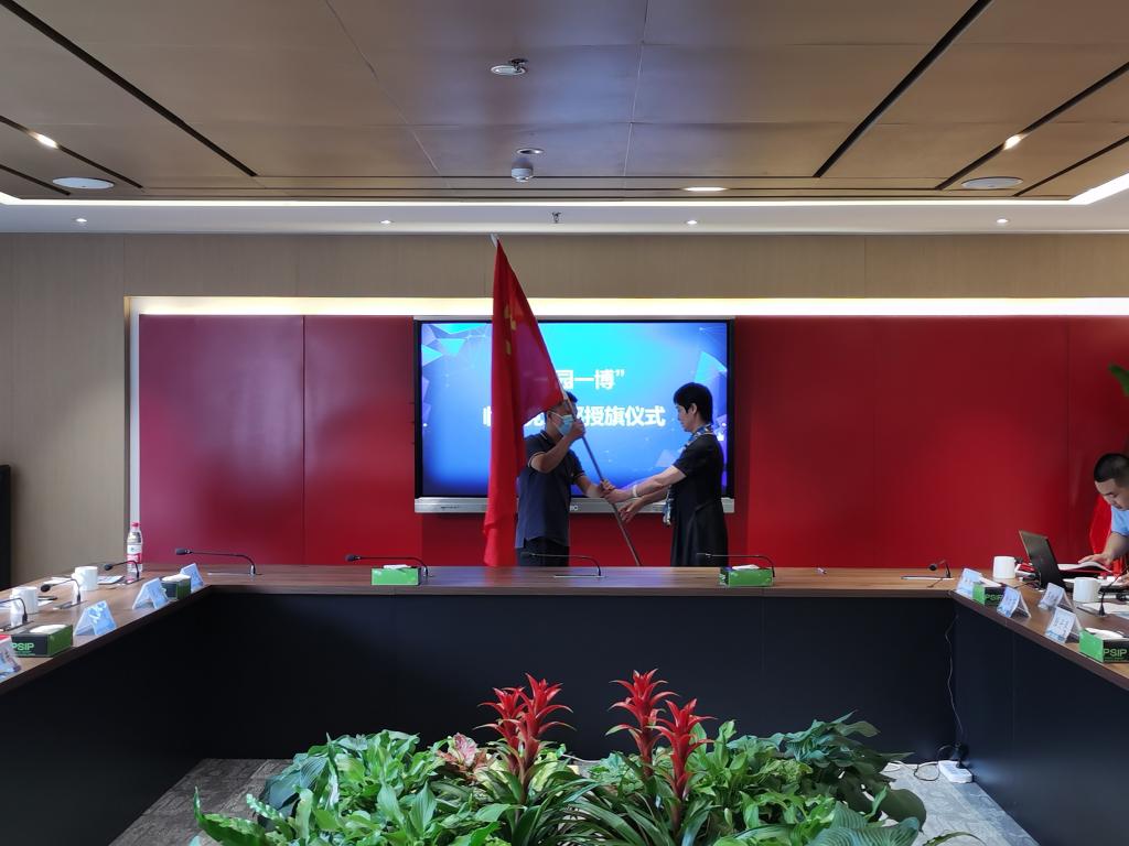 随后进行了“一园一博”服务工作站揭牌仪式及博士团队临时党支部授旗仪式。科技局倪建锋局长、嘉兴学院信息学院朱耀东院长和平湖市职业中专姚雁校长联合为“一园一博”服务工作站揭牌。嘉兴学院信息学院谢宏书记为博士团队临时党支部博士代表授旗。