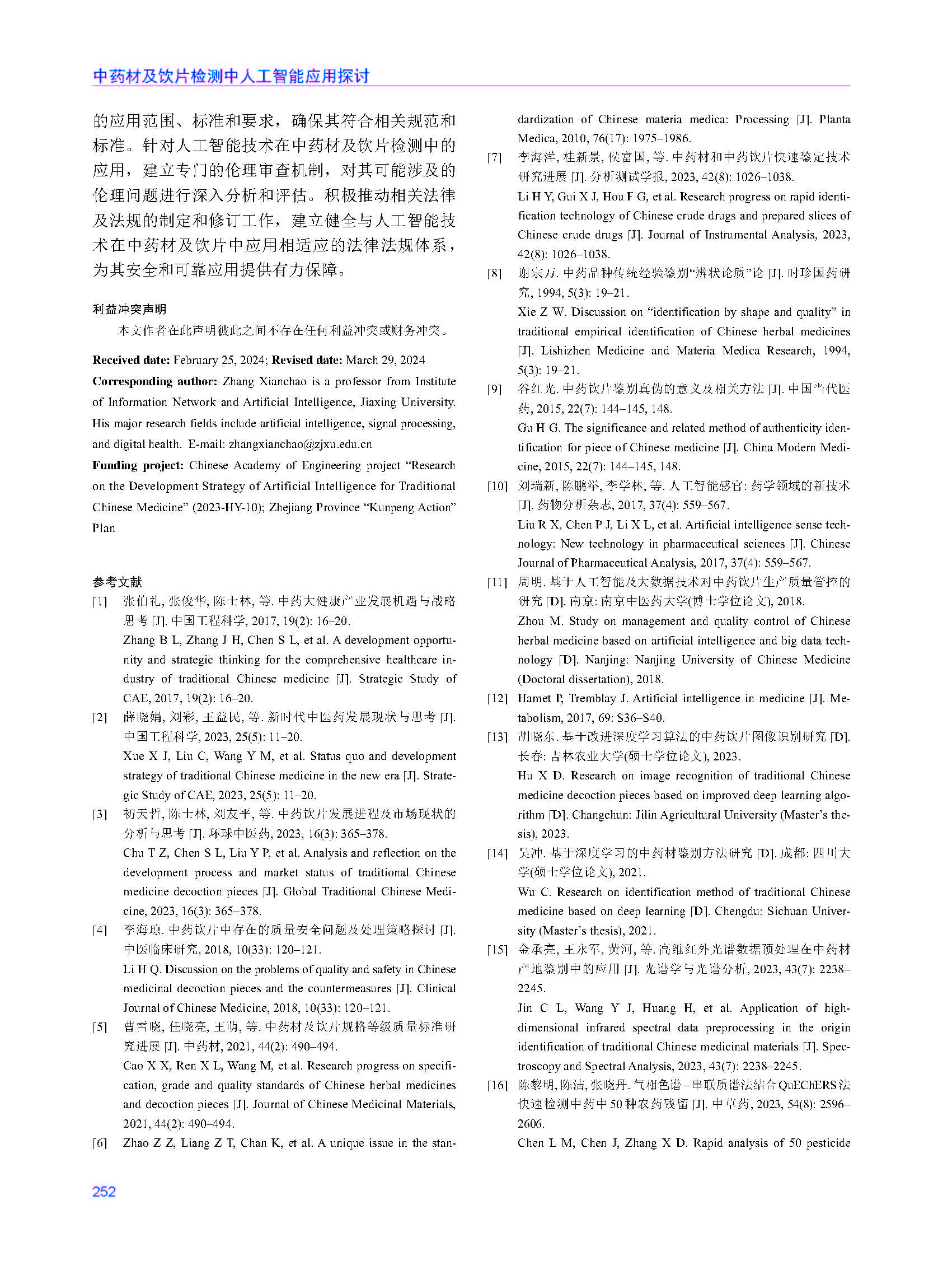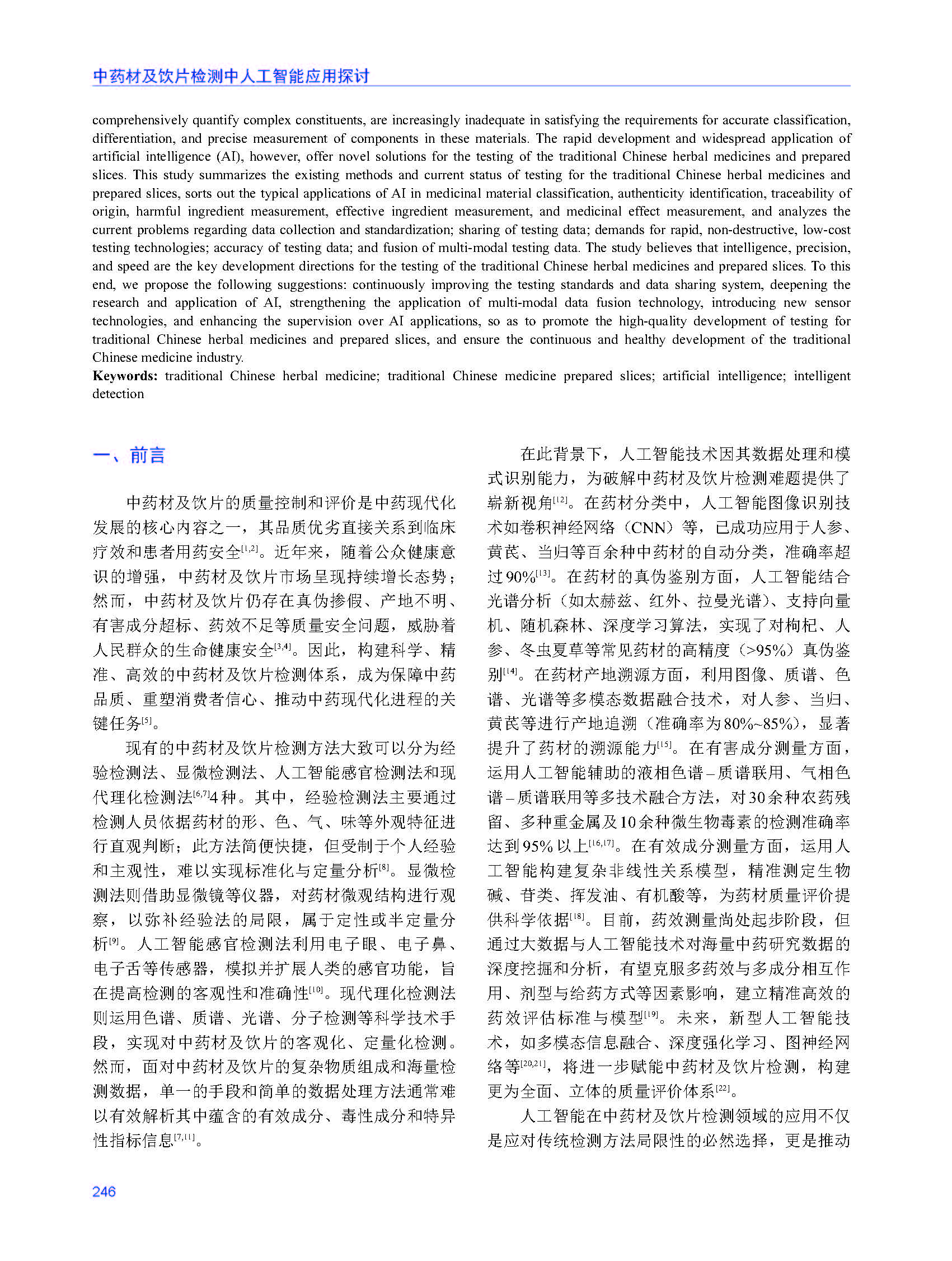 【论文】王超超、张先超等,中药材及饮片检测中人工智能应用探讨